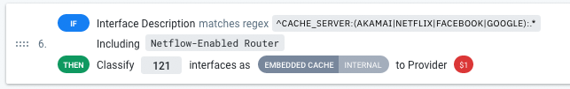 - Provider: The $1 value indicates that the provider value will be determined by performing a group capture, using regex matching, on the first group (AKAMAI|NETFLIX|FACEBOOK|GOOGLE) in the interface description (see Provider Classification with Regex).