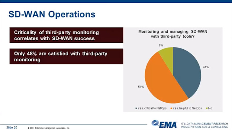 - Integrations that allow SD-WAN analytics tools to share data with other types of monitoring and security tools, such as network observability platforms.